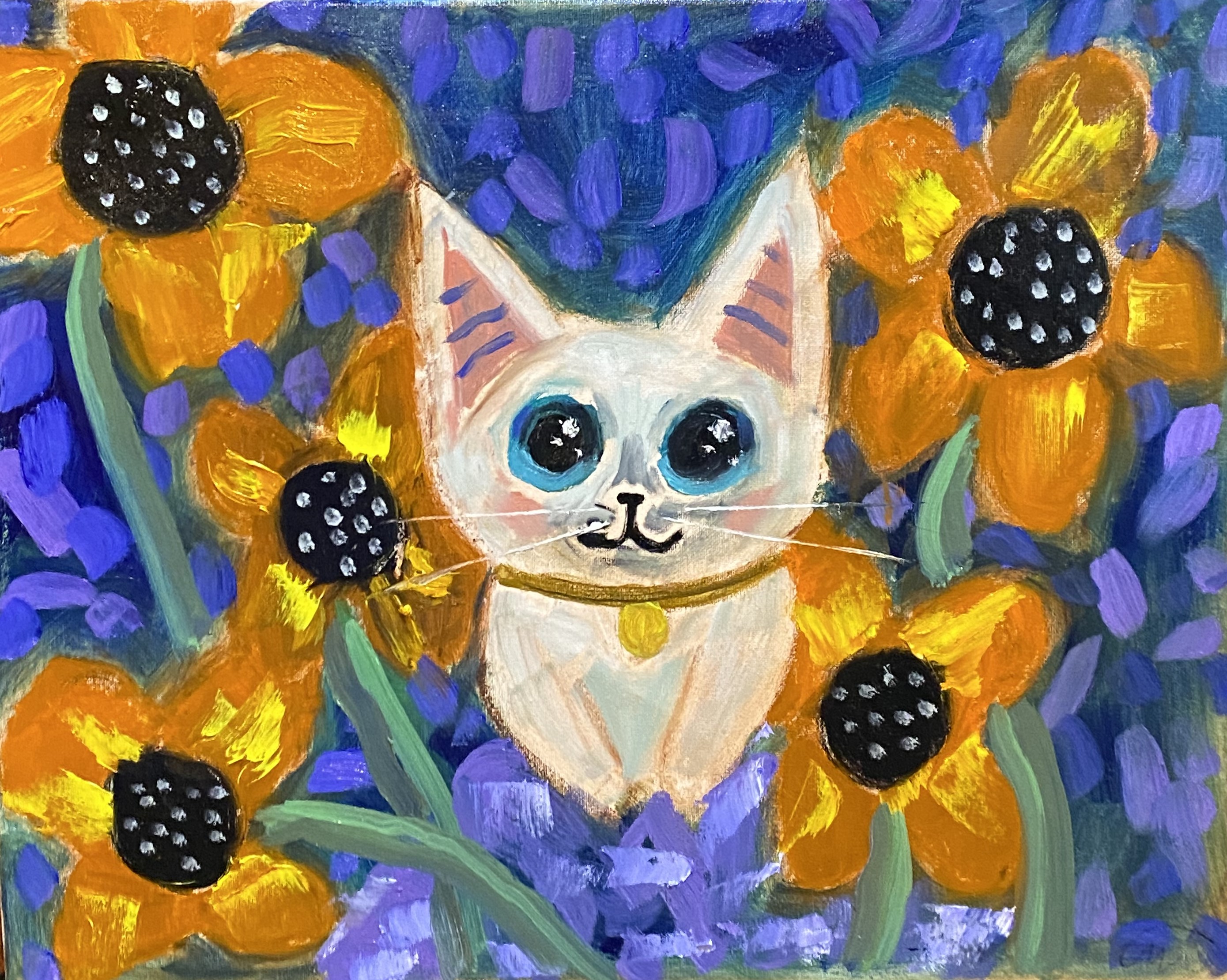 For me, when I paint I like to relax and take the time, like it is therapy. I like to express myself with different styles and ways to paint. I like to do watercolor most but I am stepping into some oil paints too. I almost always paint cats and sometimes birds. I’m not sure why this is but it makes me happy. I have had several cats during my lifetime and I can say this is where I get my inspiration from. I love cats even if they are grumpy and hiss at me!